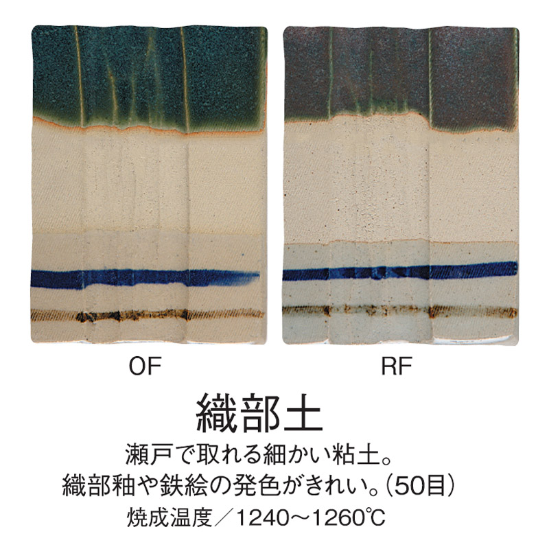 瀬戸で取れる細かい粘土。織部釉や鉄絵の発色がきれい。(50目)
