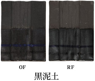 コバルト、ルチール混入のため酸化で黒、還元でグリーンがかった黒になる。