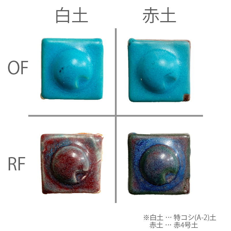 ※焼成見本は酸化焼成:1230℃(SK-7)、還元焼成:1250℃(SK-8)で行ったものです。