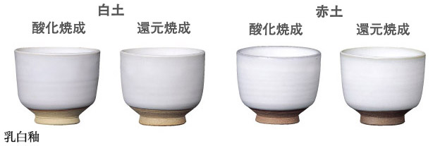 ※焼成見本は酸化焼成:1230℃(SK-7)、還元焼成:1250℃(SK-8)で行ったものです。