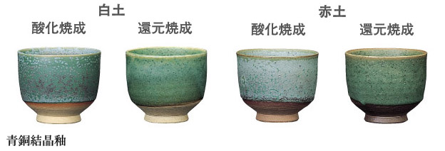 ※焼成見本は酸化焼成:1230℃(SK-7)、還元焼成:1250℃(SK-8)で行ったものです。
