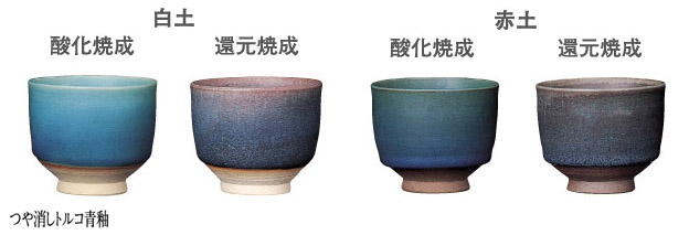 ※焼成見本は酸化焼成:1230℃(SK-7)、還元焼成:1250℃(SK-8)で行ったものです。
