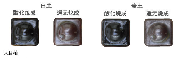 酸化で黒く、還元では赤茶になる天目釉です。