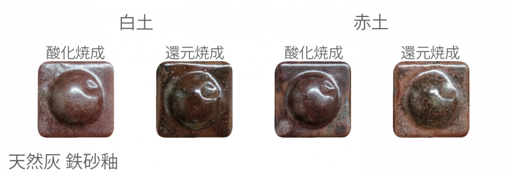 ※焼成見本は酸化焼成:1230℃(SK-7)、還元焼成:1250℃(SK-8)で行ったものです。