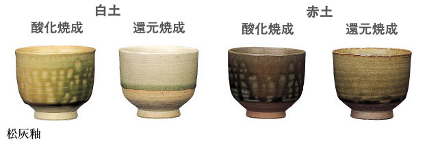 ※焼成見本は酸化焼成:1230℃(SK-7)、還元焼成:1250℃(SK-8)で行ったものです。