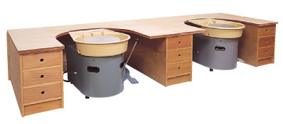 電動ろくろ専用の作業台、一人掛け、二人掛けそれぞれラインナップ。