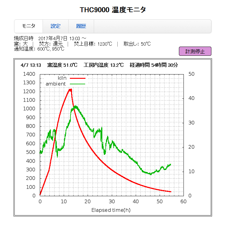 〇窯の温度を手元(スマホやタブレット)、もしくはPCで見られるようにしたい