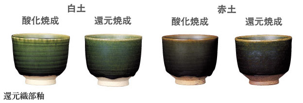 ※焼成見本は酸化焼成:1230℃(SK-7)、還元焼成:1250℃(SK-8)で行ったものです。