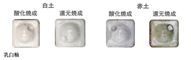 ※焼成見本は酸化焼成:1230℃(SK-7)、還元焼成:1250℃(SK-8)で行ったものです。
