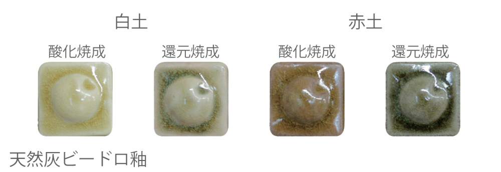 ※焼成見本は酸化焼成:1230℃(SK-7)、還元焼成:1250℃(SK-8)で行ったものです。