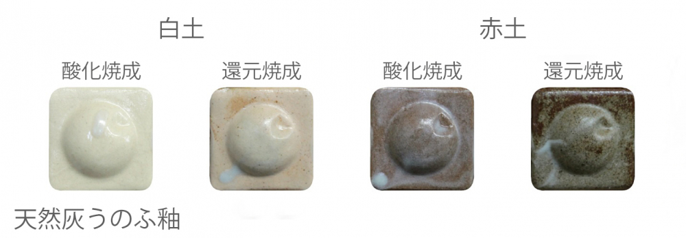 ※焼成見本は酸化焼成:1230℃(SK-7)、還元焼成:1250℃(SK-8)で行ったものです。
