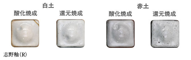 ※焼成見本は酸化焼成:1230℃(SK-7)、還元焼成:1250℃(SK-8)で行ったものです。