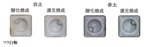 ※焼成見本は酸化焼成:1230℃(SK-7)、還元焼成:1250℃(SK-8)で行ったものです。