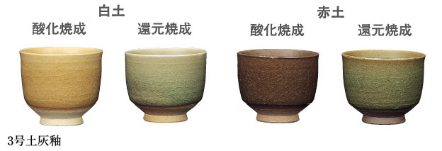 ※焼成見本は酸化焼成:1230℃(SK-7)、還元焼成:1250℃(SK-8)で行ったものです。